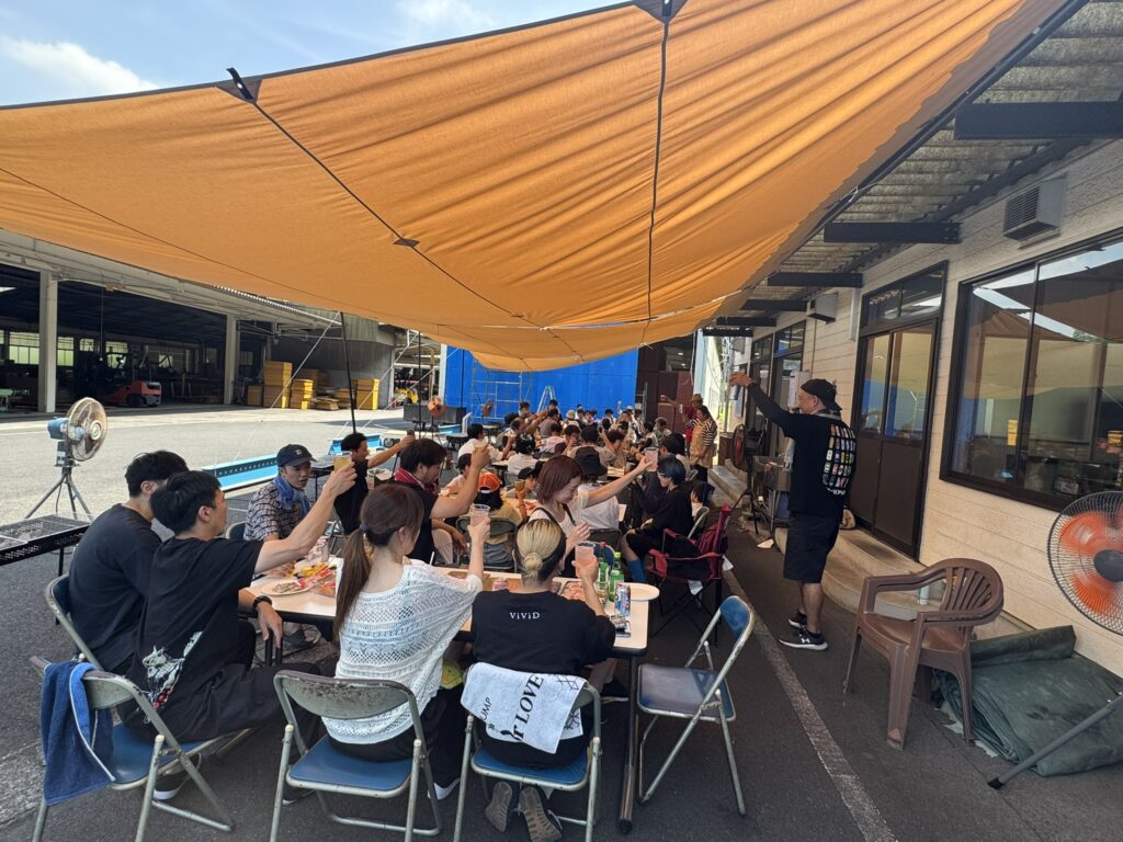 社員もご家族も子どもたちも大集合して、真夏の太陽の下ワイワイ盛り上がりました。